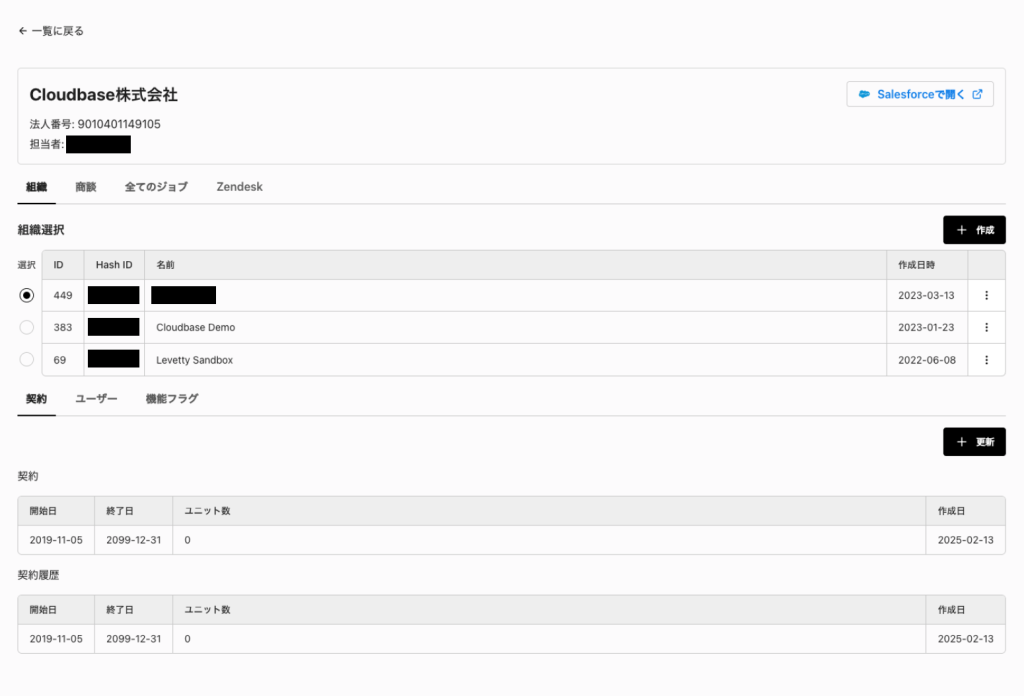締結された契約書を真実の情報として溜まっているのがHubbleになるので、カスタマーサクセス部門は、契約期間、クラウド環境の大きさ、プランをHubbleに集約されている契約書から確認し、契約の内容通りにサービスのご提供やオプションのON/OFFの制御を行っています。実際にご利用いただいているクラウド環境の容量が契約内容を上回った場合には営業にトスアップしてアップセルにつなげています。