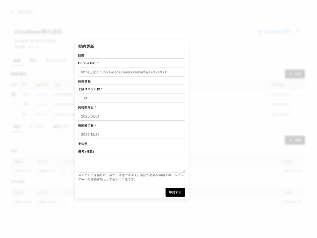 いずれ当社もIPOを目指すことになった場合には、契約審査交渉の過程やコミュニケーションも含めて履歴を追える環境は非常に重要ですし、当社は稟議にバクラクを使っておりますが、稟議にHubbleのURLを添付して内部統制の担保にも活用しています。
