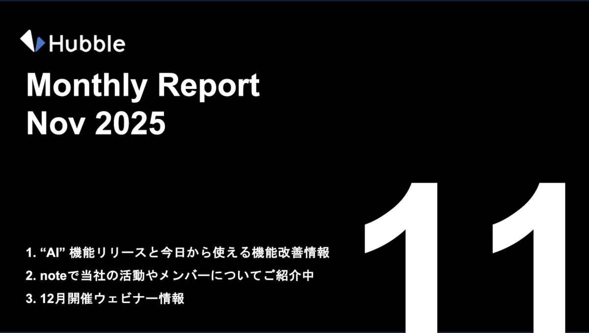 HubbleのMonthly Reportでは、直近1ヶ月でのアップデートやお知らせをお届けしています。