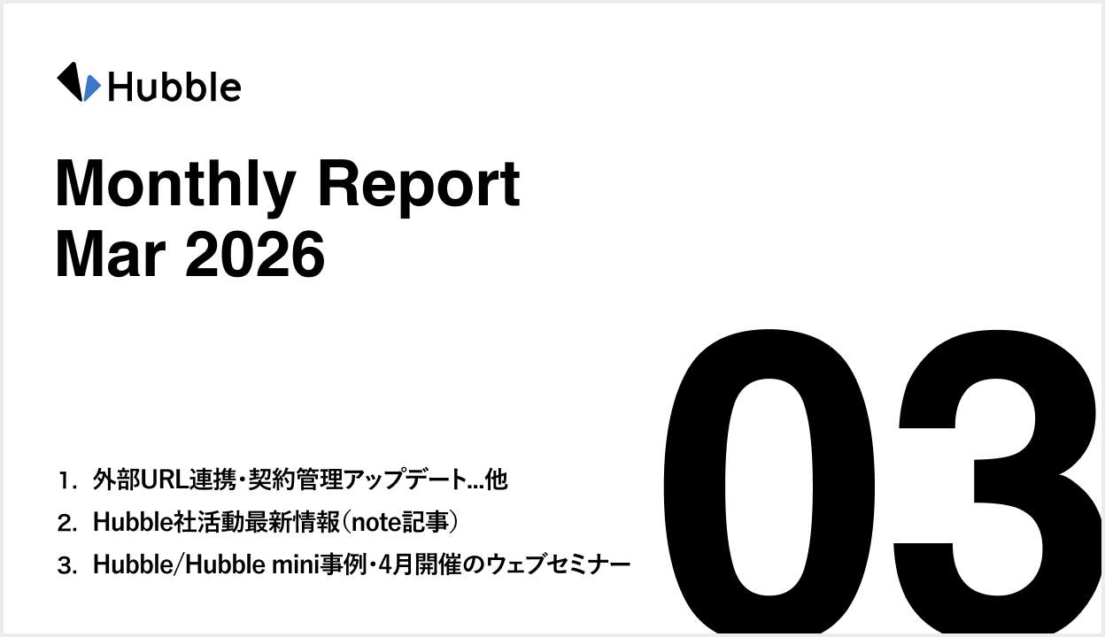 HubbleのMonthly Reportでは、直近1ヶ月でのアップデートやお知らせをお届けしています。
