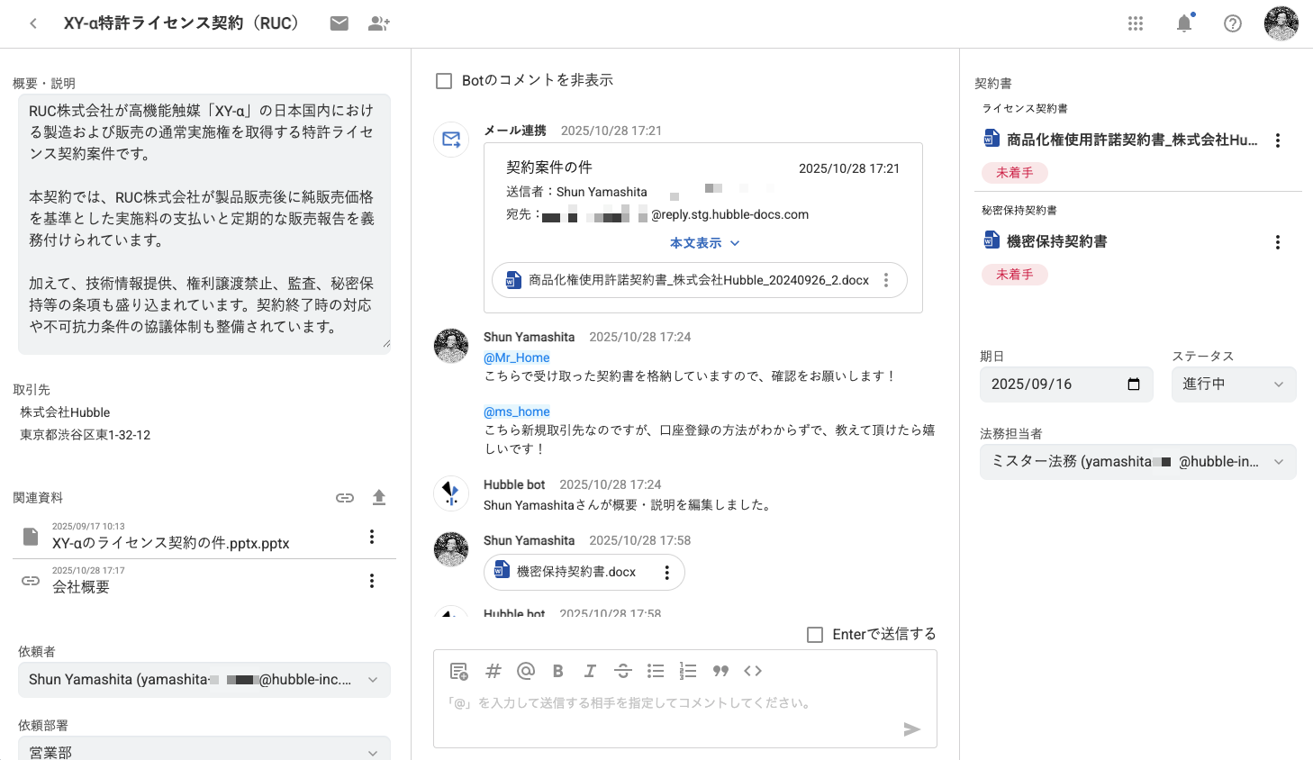 これにより、契約書レビューや審査業務の中で生まれた知見をひな形の改善に結びつけることができ、組織全体で契約知識を循環させる仕組みを実現します。