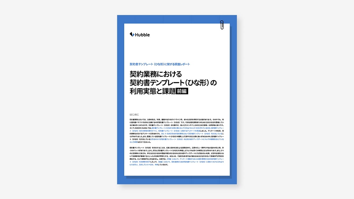本調査レポートでは、アンケート調査の結果から導出される、契約書テンプレート(ひな形)利用の現状、潜在リスク・課題とそれに対する対応策を分析していきます。