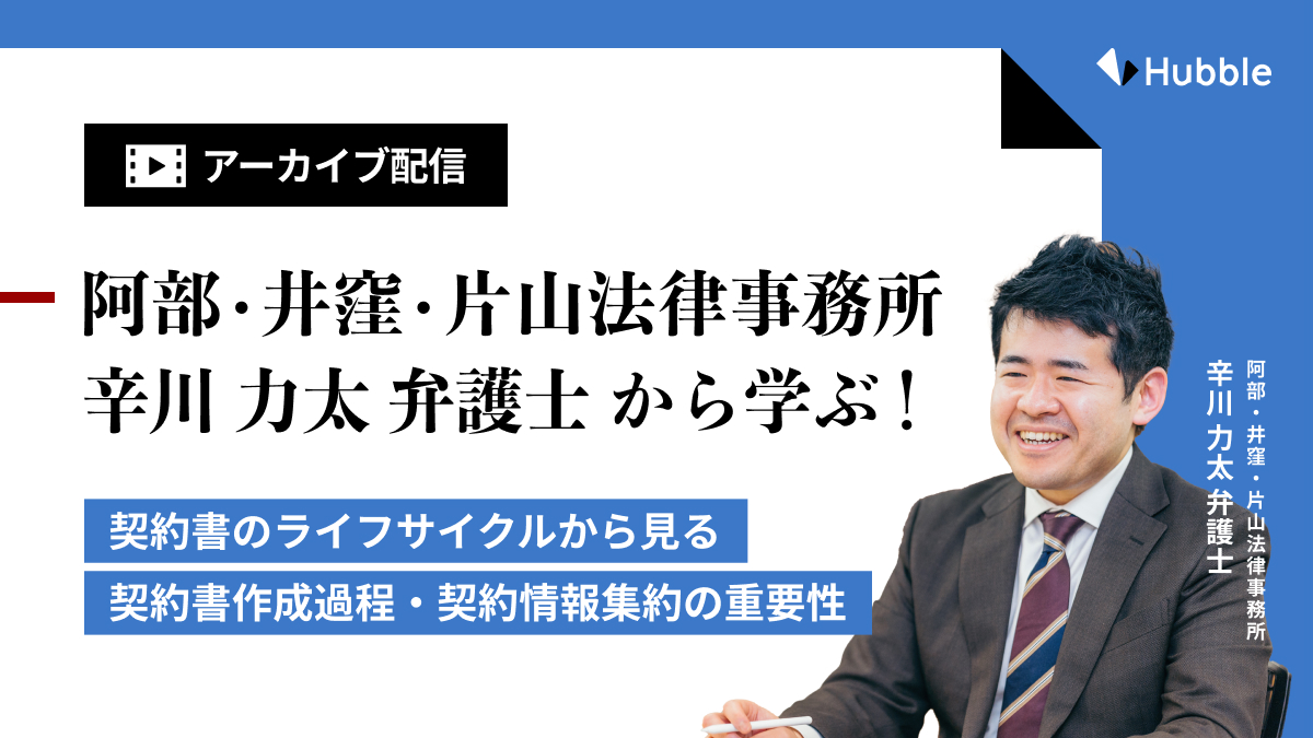 本アーカイブでは、『契約書作成の実務と書式-企業実務家視点の雛形とその解説-〔第2版〕』(有斐閣、2019年) や『契約解消の法律実務』(中央経済社、2022年) の執筆者のお一人である、阿部・井窪・片山法律事務所パートナー弁護士辛川力太先生より、契約書のライフサイクルから見る、契約書作成過程・契約情報集約の重要性についてご解説いただきます。