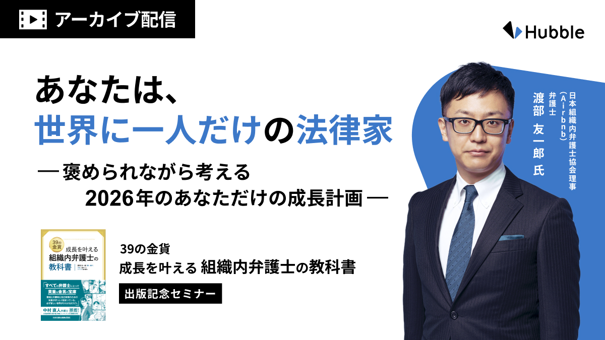 2025年11月4日に発売された『成長を叶える 組織内弁護士の教科書』(日本加除出版、2025年)の読み応えを1.2〜2.25倍に深掘りする内容をお届けする出版記念セミナーのアーカイブ動画をお届けします。