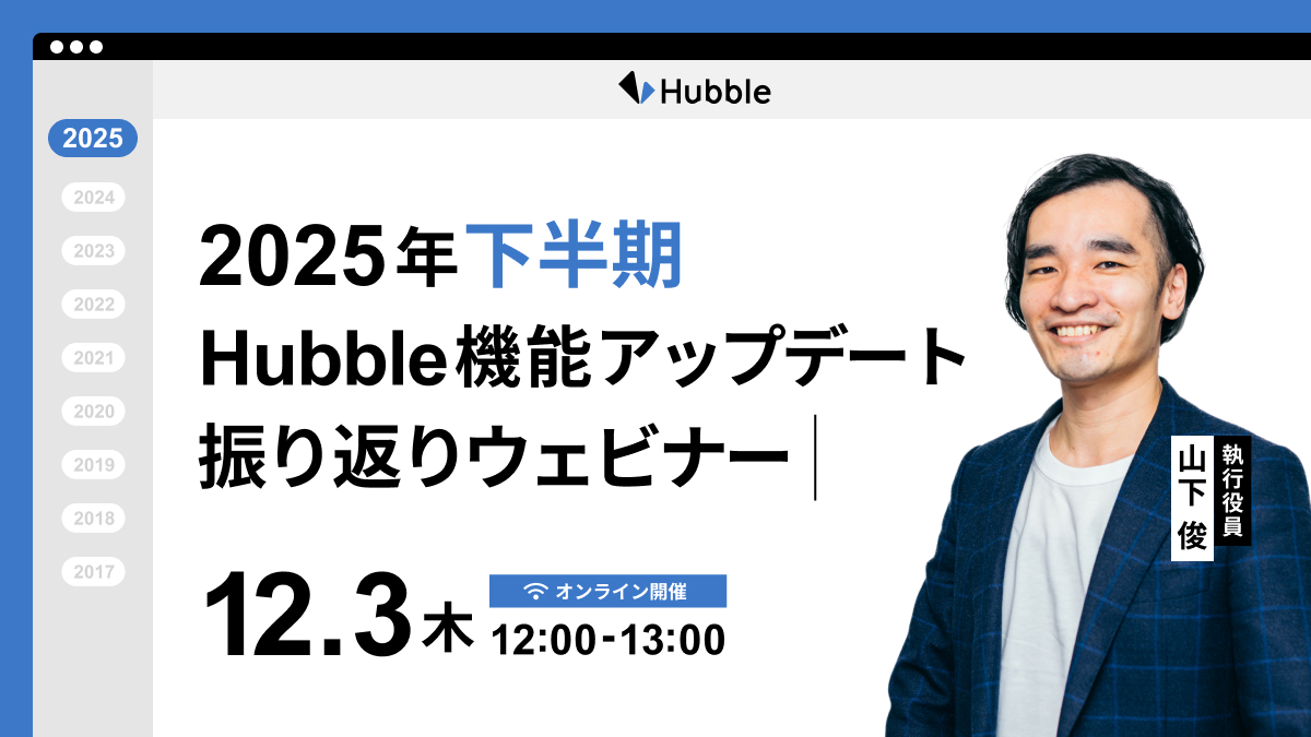 「20 Weeks by Hubble AI」として毎週のAI機能リリースを進めるとともに、案件管理機能の拡充、ドキュメント権限の刷新、管理画面の統合など、主要機能についても継続的に改善しています。